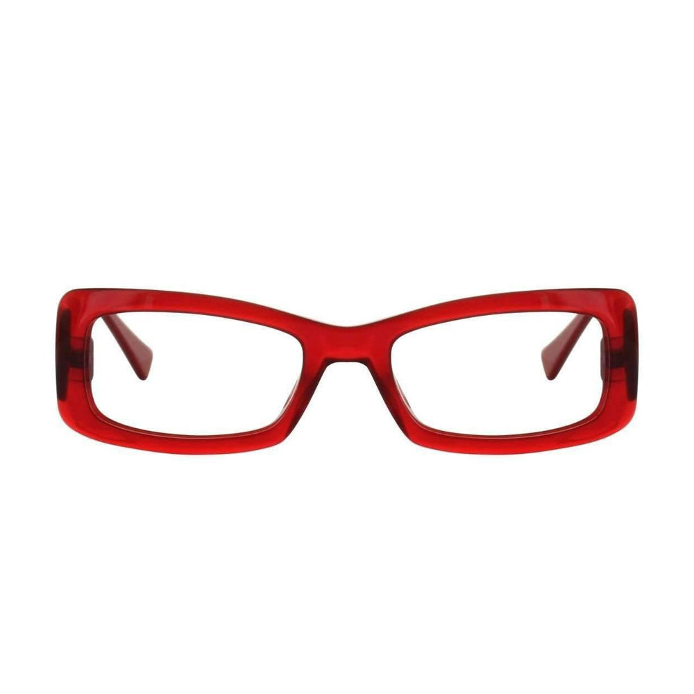 Les Lunettes Custo 3003 Rouge sont disponibles en lunettes de repos, avec des verres anti-reflet traités Cool Blue ou des verres loupe presbytie de +1.00 à +3.50 de correction.